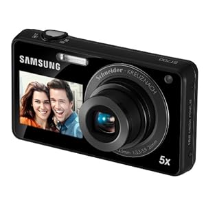The Samsung ST700 DualView 16.1-Megapixel Digital Camera features LCD viewfinders on top and rear with the camera, allowing you to look at perfectly framed self-portraits. The camera's Smart Auto feature automatically adjusts composition settings and chooses the best mode to your picture, while dual image stabilization yields photos that are evident and blur-free. The Samsung ST700 has a 16.1-megapixel resolution using a 5x optical zoom.